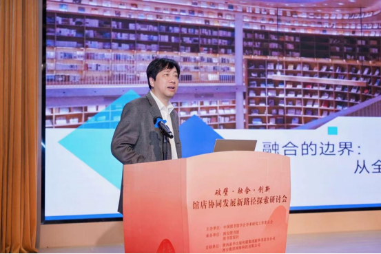 张赶以“馆店融合探新路,协同共生促繁荣”为主题,分享了西安市新华书店馆店融合的创新实践。他提出推动馆店深度融合的四大突破:破除制度壁垒,构建协同共生运营机制;破除空间壁垒,打造无界融合服务场景;破除服务壁垒,实现馆店双向赋能增效;破除主体壁垒,共塑城市文化标杆品牌。未来,西安新华将持续深化协同、共建内容生态,不断优化运营模式,推动馆店融合向更深层次、更高水平发展,为书香西安建设贡献力量。