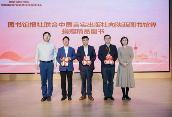 开幕式上,图书馆报社联合中国言实出版社,向陕西省图书馆界捐赠全国两会学习辅导系列精品图书。周云岳、王燕平与西安爱知中学副校长黎建军分别代表公共图书馆、高校图书馆和中小学图书馆接受赠书。这批权威读物兼具政策高度与文献价值,既是理论学习的重要载体,也是馆店协同、文化惠民的生动实践,以实际行动助力地方文化事业发展。