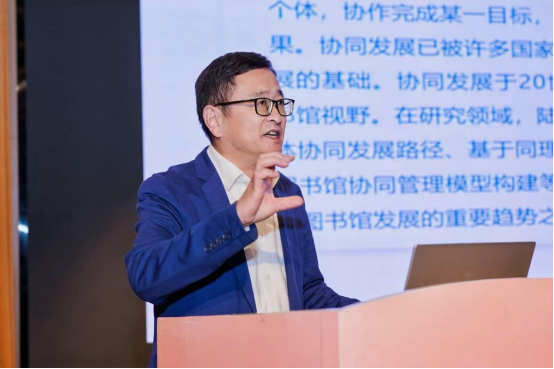 王建涛以《图书馆协同发展:动因与路径》为题,系统阐释图书馆协同发展的逻辑与实践。他分析了图书馆从分化到融合的历史进程,指出信息爆炸、技术变革、社会需求升级是协同发展的核心动因;以协同理论、共生理论、利益相关者理论与新公共服务理论为支撑,结合行业转型困境与政策导向,阐明协同发展的必要性。同时剖析当前体制、观念、版权等障碍,提出机构联盟、资源、服务、活动、项目、技术六大协同模式,构建资源整合、机制保障、多元共生的发展路径,为图书馆高质量协同发展提供理论指引与实践方案。