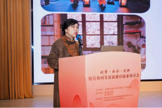 刘小琴在致辞中强调,今年是“十五五”规划的开局之年,也是我国图书馆事业迈向高质量发展的关键时期。针对馆店协同发展她提出了三点建议:一要在构建馆店协同的制度框架上“破壁”;二要推动馆店之间的资源优势互补;三要在探索多元化的融合发展形态上创新。她寄语与会同仁,希望以本次研讨会为契机,携手推动馆店协同走深走实,共同为新时代图书馆事业高质量发展贡献智慧与力量。