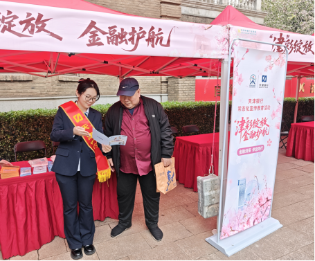恰逢海棠花节,天津银行大理道支行院内布置的“好事花生”主题花瀑前人流如织。工作人员在市民、游客驻足拍照的同时,主动宣传金融消费者权益保护知识,将金融安全理念融入春日赏花的美好场景中。营业大厅内,金融知识展板与智慧服务终端相得益彰,工作人员穿梭其间讲解“套路贷”识别技巧。不少游客手持宣传折页在花前留影,让金融知识随着海棠美景广泛传播。