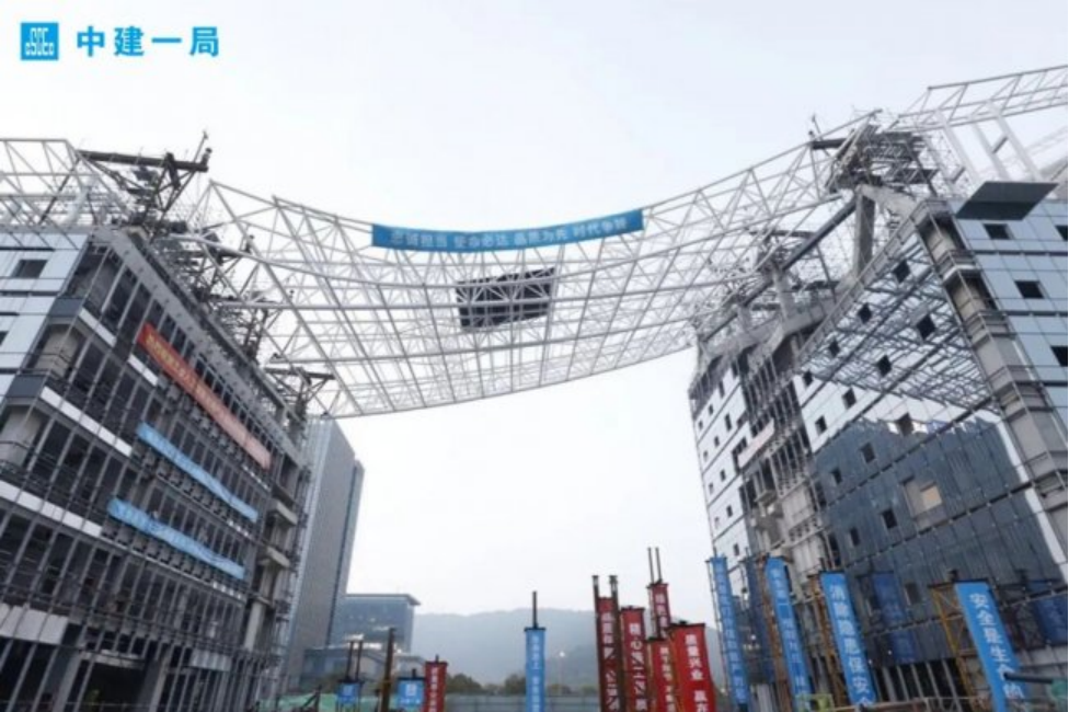 中建一局华北公司承建的苏州工业人工智能太湖产业基地项目完成异形网架提升