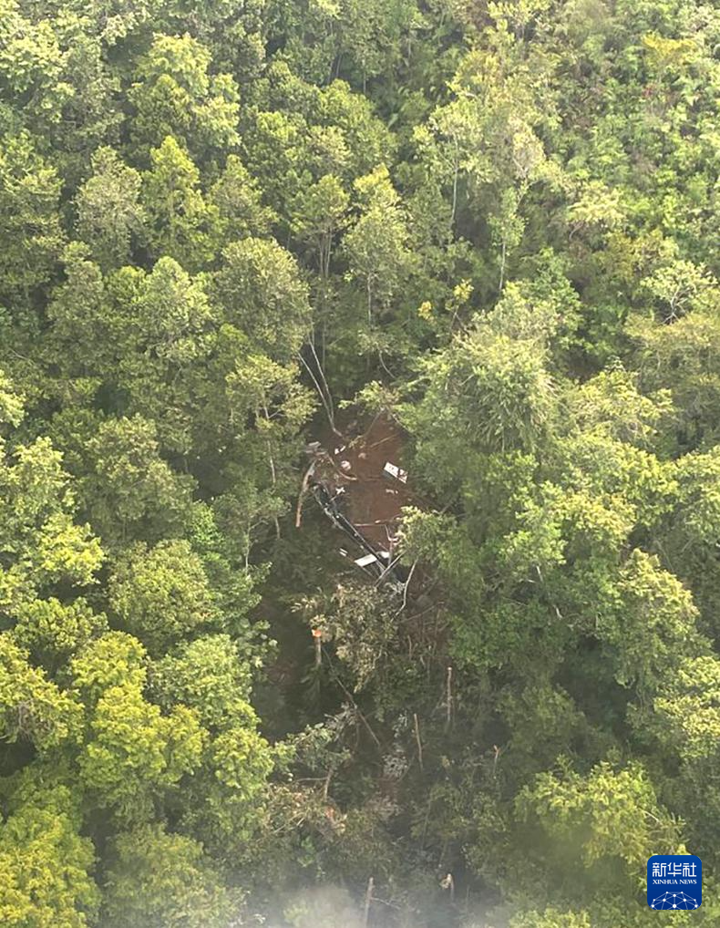 这是4月16日在印度尼西亚西加里曼丹省拍摄的坠毁直升机残骸。新华社发(印尼国家搜救局供图)
