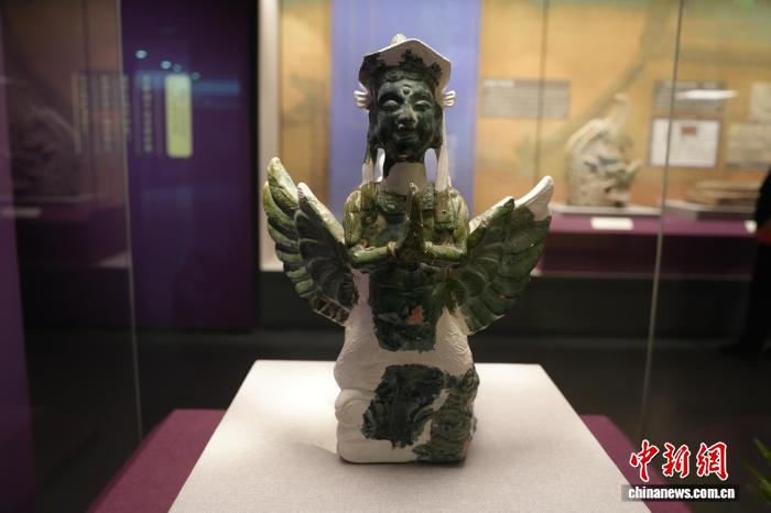 4月15日,“贺兰山下桃花石——西夏历史文化特展”在河南博物院开展。图为西夏文物绿琉璃迦陵频伽。 王宇 摄