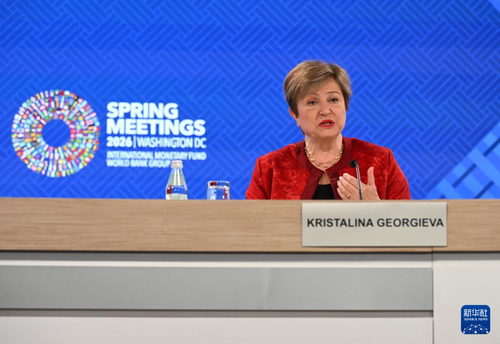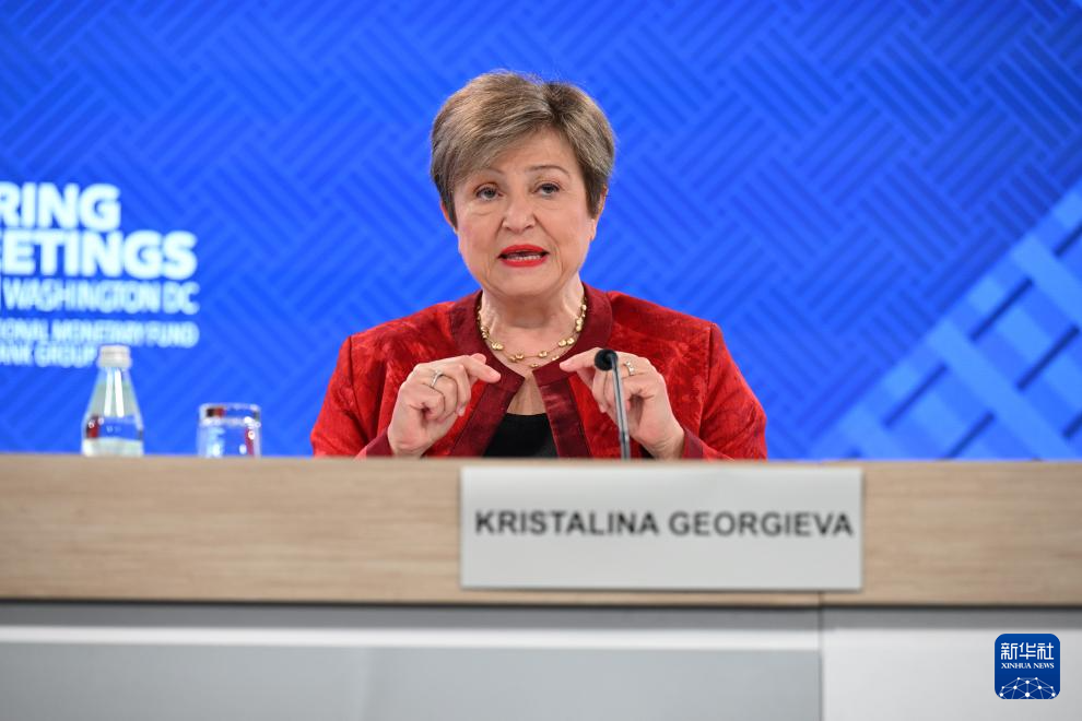 4月15日,在美国首都华盛顿,国际货币基金组织(IMF)总裁格奥尔基耶娃在IMF和世界银行春季会议期间的新闻发布会上讲话。新华社记者 李睿 摄