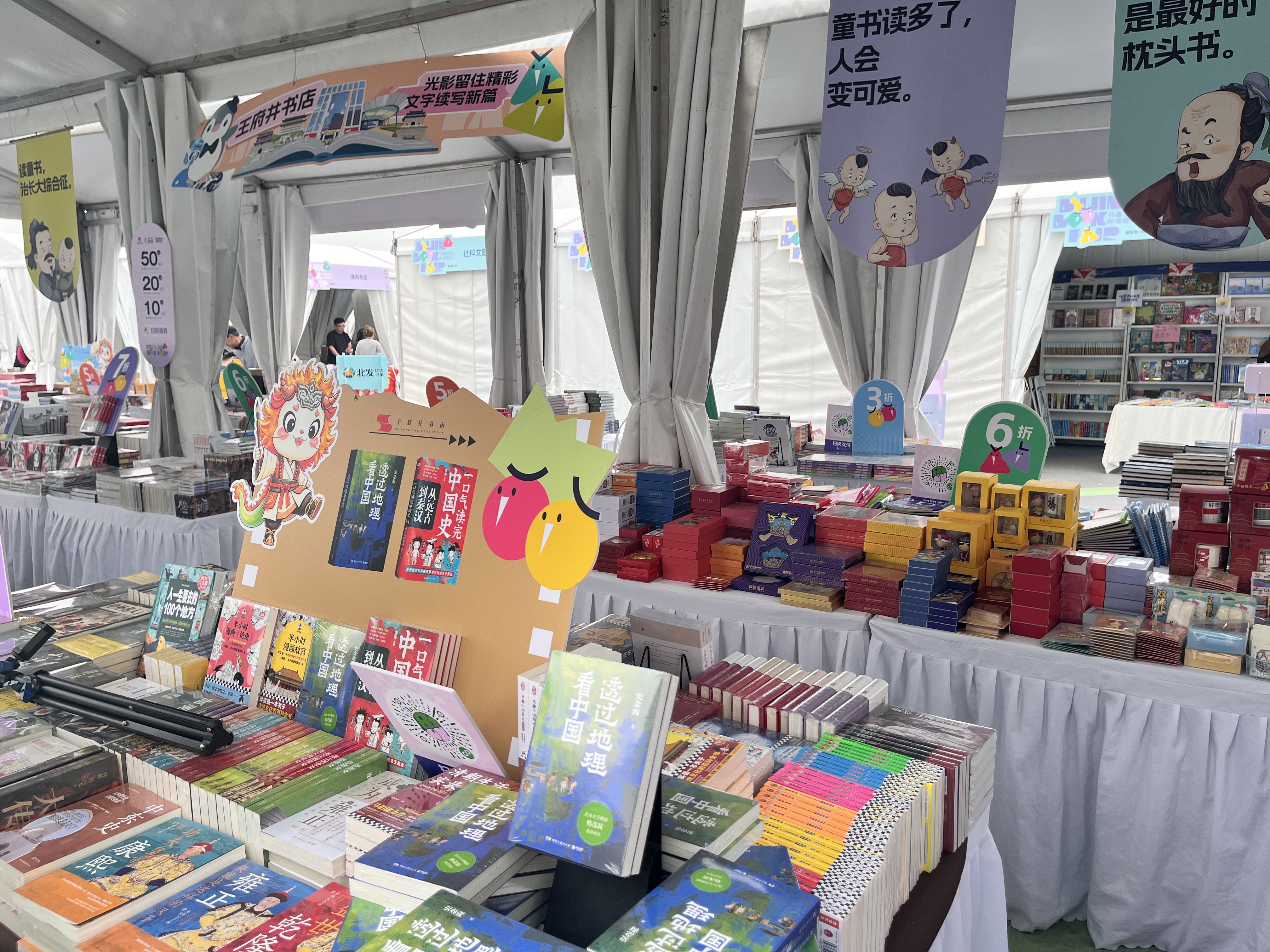 在朝阳公园主展场,书店特设特色展区,集中展销3000余种历史、社科类图书,重点推荐《透过地理看中国》《历史的温度8》等新书及畅销书。展区布局巧妙联动北京国际电影节,融入丰富电影元素,营造出极具辨识度的光影阅读空间。