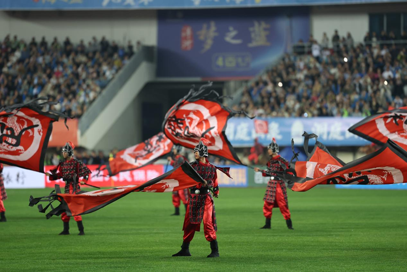 江苏宿迁奥体中心的夜空被呐喊声点燃