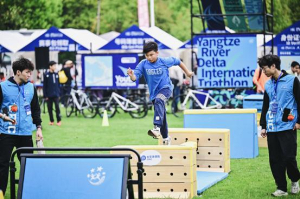 嘉年华现场,“逐风奔跑・解锁运动潜能”环节,中国太保联合专业体能机构定制打造沉浸式跑酷装置,还原铁人三项跑步赛段的挑战场景,模拟跨越障碍、冲刺终点的热血瞬间,吸引众多青少年与运动爱好者踊跃参与,在趣味挑战中感受铁人三项运动的魅力,传递科学健身、积极向上的生活理念。