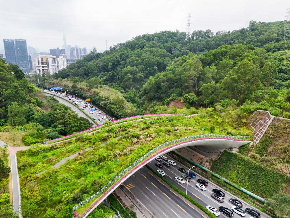 近年来,深圳高质量实施“山海连城计划”,以生态廊道打造、生态友好设施建设、精细化生态管理等为核心,探索出高密度中心城区生物多样性保护的特色路径,陆续建成了鲲鹏径一号桥、二号桥及三号桥三座生态廊桥,为野生动物栖息迁徙预留充足的空间,打造人类与野生动物互不打扰、和谐共生的“双通道”。