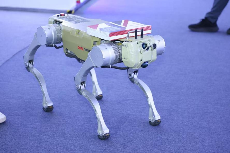 2026第六届雷达未来大会展出的四足机器人平台(中国雷达行业协会供图)
