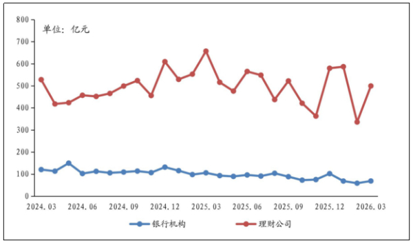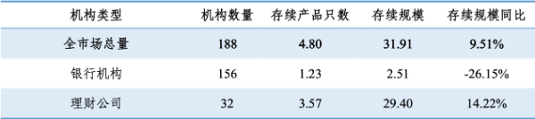 2026年一季度末各类机构理财产品存续情况(单位:家、万只、万亿元) 来源:《中国银行业理财市场季度报告(2026年一季度)》