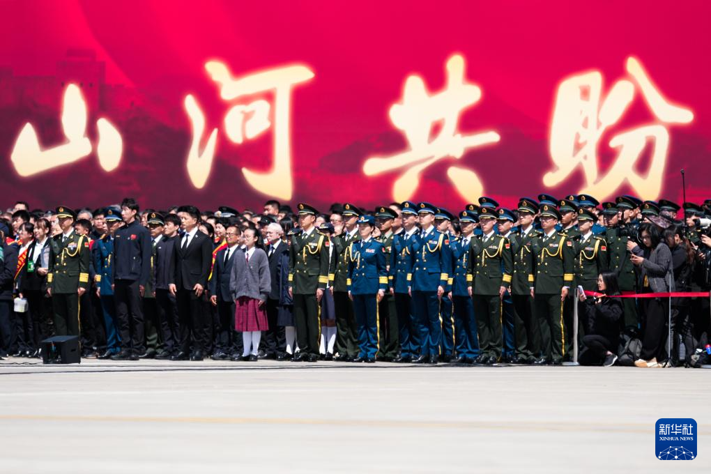 4月22日上午,第十三批在韩中国人民志愿军烈士遗骸由中国空军运-20B从韩国接回辽宁沈阳。这是迎回仪式现场。新华社发(杨盼 摄)
