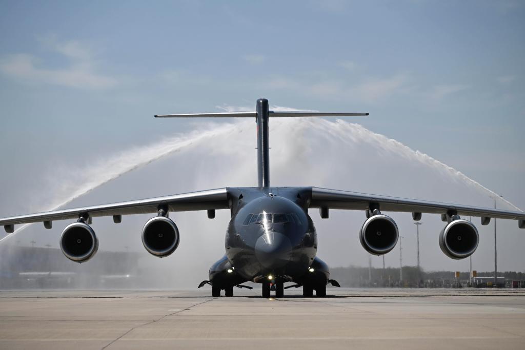 22日11时25分,运-20B平稳降落在沈阳桃仙国际机场。第十三批12位在韩中国人民志愿军烈士英灵及146件遗物回到祖国怀抱。机场以“过水门”最高礼遇为英灵洗尘。