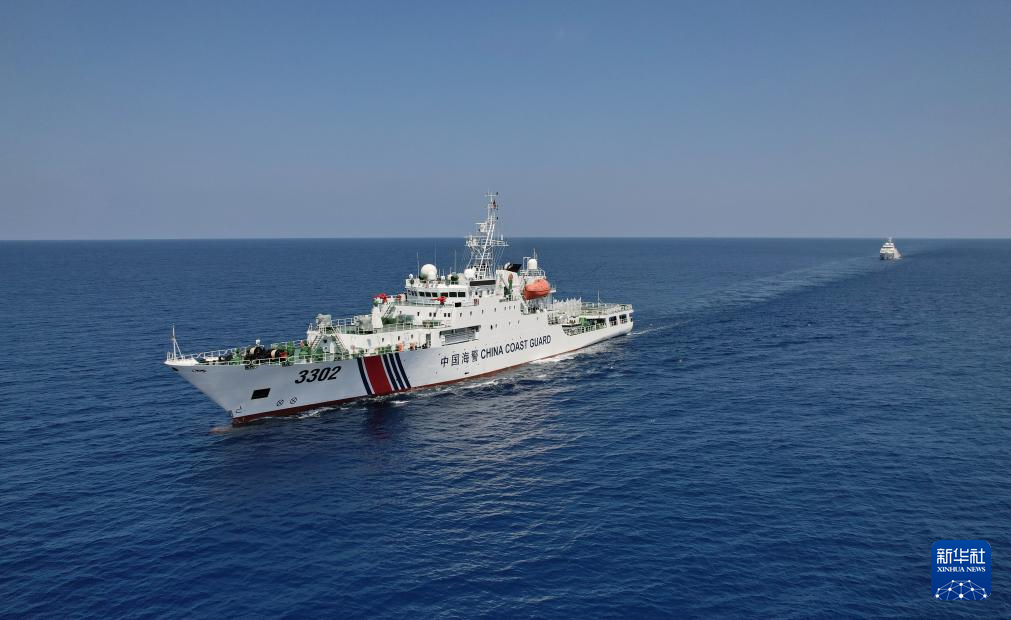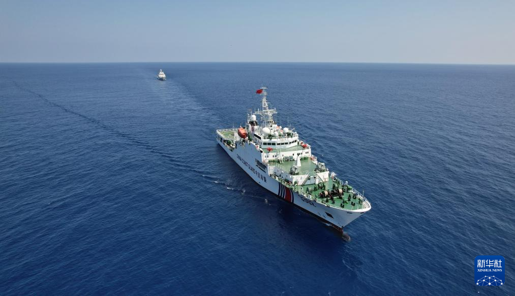 4月17日,海警川山舰编队行驶在南海某海域(无人机照片)。