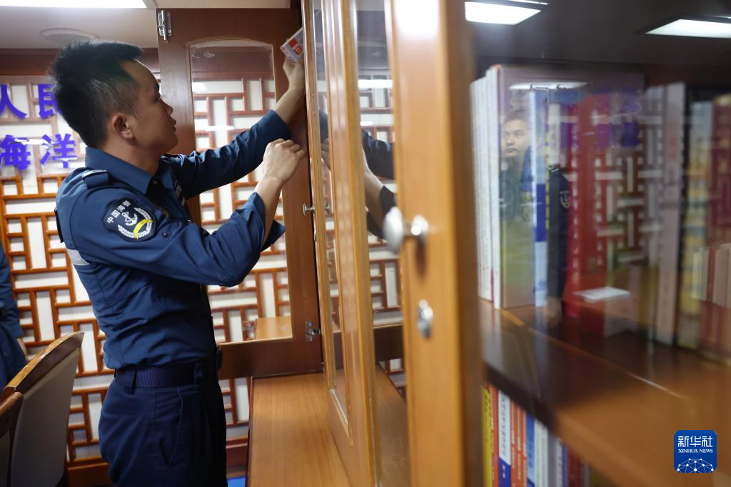 近日,海警川山舰在南海黄岩岛海域值守。海警执法员在工作间隙走进船舱内的“海疆书苑”阅览室,借阅海洋法规、维权执法手册、红色经典与文学名著等书籍。此外,大家还结合远海值守实际,举办读书分享会等活动,交流读书心得与学习感悟,让阅读成为远海值守期间精神补给。