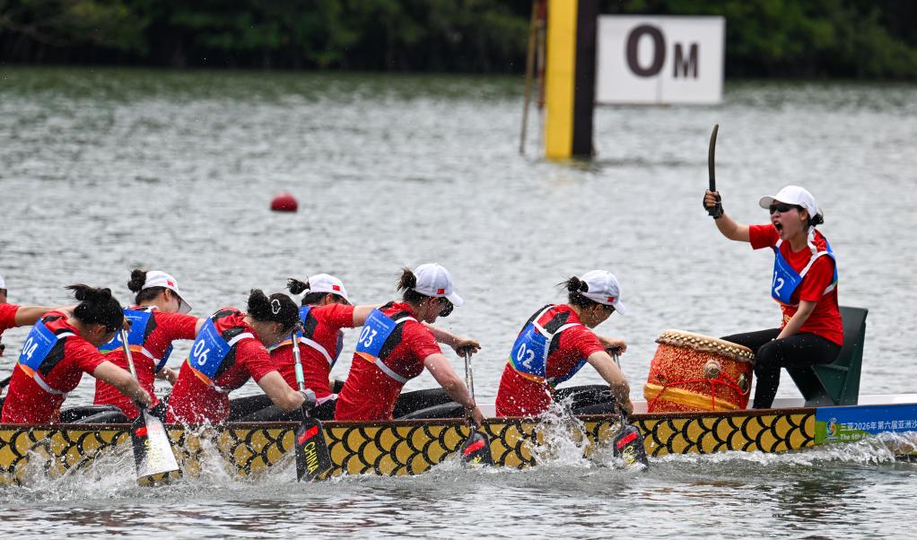 新华社三亚4月25日电(记者李琳海)25日,在海南三亚举行的第六届亚洲沙滩运动会12人龙舟200米直道赛中,中国女队继此前问鼎100米直道赛后,再添一金。
