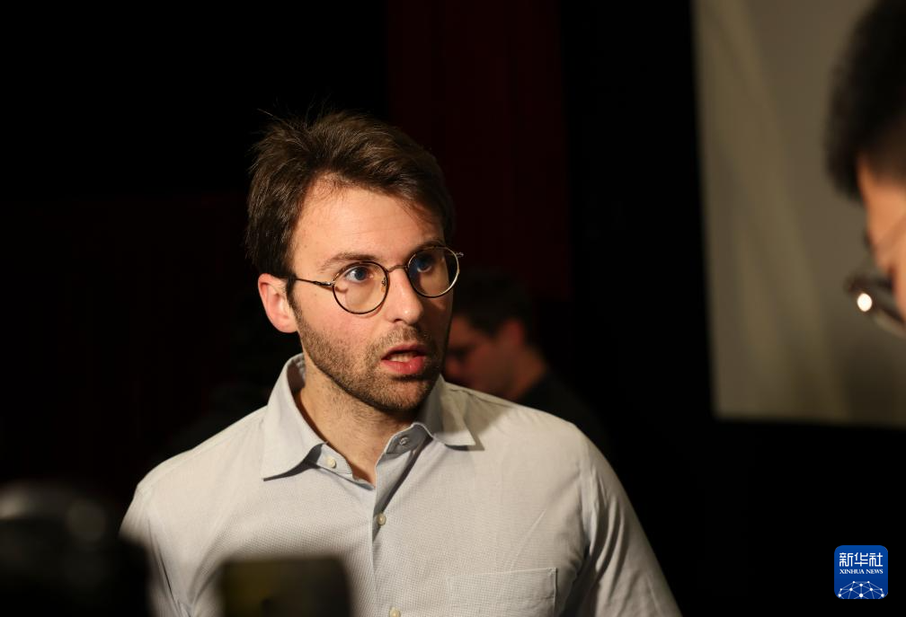 4月24日,马库斯·德雷特斯在法国巴黎举行的展映活动后接受记者采访。新华社记者 邬惠我 摄