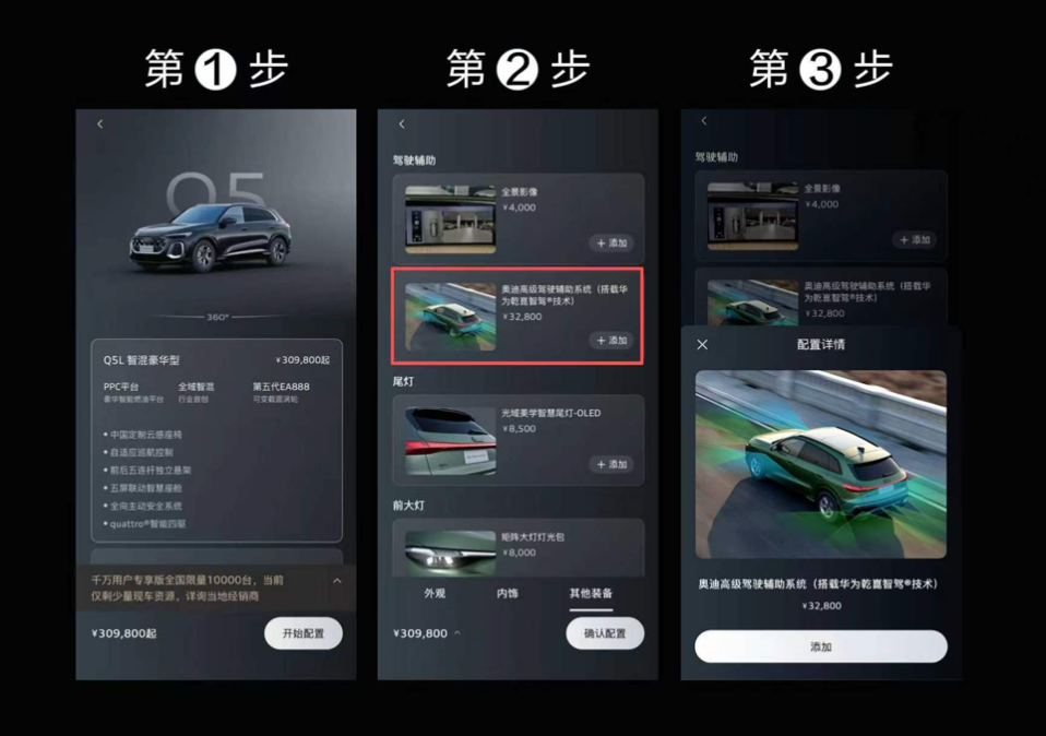 即日起,用户可通过一汽奥迪个性化定制平台,预订选装华为乾崑智驾的全新奥迪Q5L,5月起全新奥迪Q5L将全国到店开启试驾。