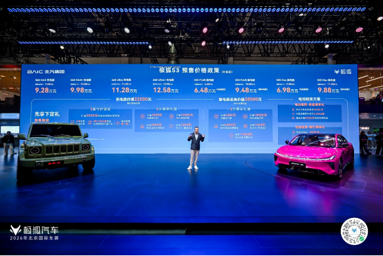 本次车展,极狐S3全球首发,聚焦10万级纯电家轿市场,是极狐深耕主流家用市场、完善产品矩阵的关键布局。