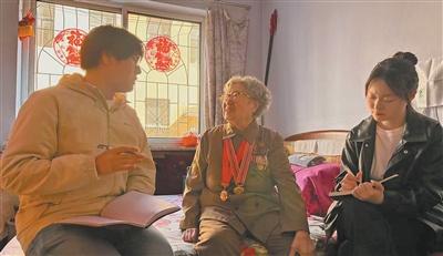 2026年4月,寻访团采访抗美援朝老战士徐菁(中)。记者 辛 阳摄