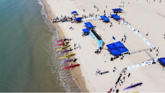 4月27日,2026年全国海岸赛艇沙滩冲刺公开赛(福建泉州站)在泉州台商投资区玉沙湾公园正式开幕。