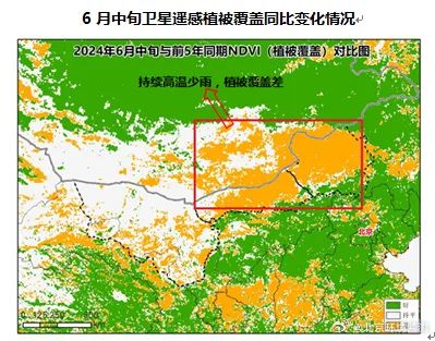 一般情况下,进入6月,西北上游地区植被覆盖较好,降水增多,发生较强沙尘天气的频率显著下降。但是近期蒙古国中南部、东南部及内蒙古中部,降水偏少50%以上,气温偏高2℃左右,植被覆盖率较前5年同期明显偏低,易于起沙;同时受21日至22日出现的中等强度蒙古低压气旋系统影响,出现了中等偏强的沙尘天气系统,引起较强沙尘天气。