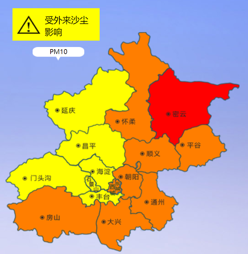 北京市生态环境监测中心表示,6月22日,本市受到上游较强沙尘天气的显著影响,全市平均PM10达到轻中度污染水平,部分时段部分地区达到严重污染。