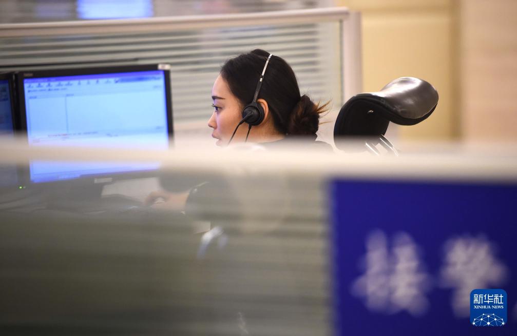 2024年9月17日,江苏省宿迁市公安局110报警服务台辅警在接听群众求助电话。新华社发(王力 摄)