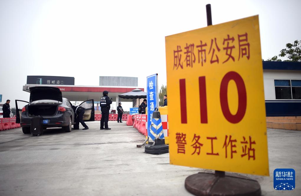 2016年1月8日,在位于成都市成南高速公路路口的110警务工作站,执勤民警对入城车辆进行安全检查。新华社记者 薛玉斌 摄