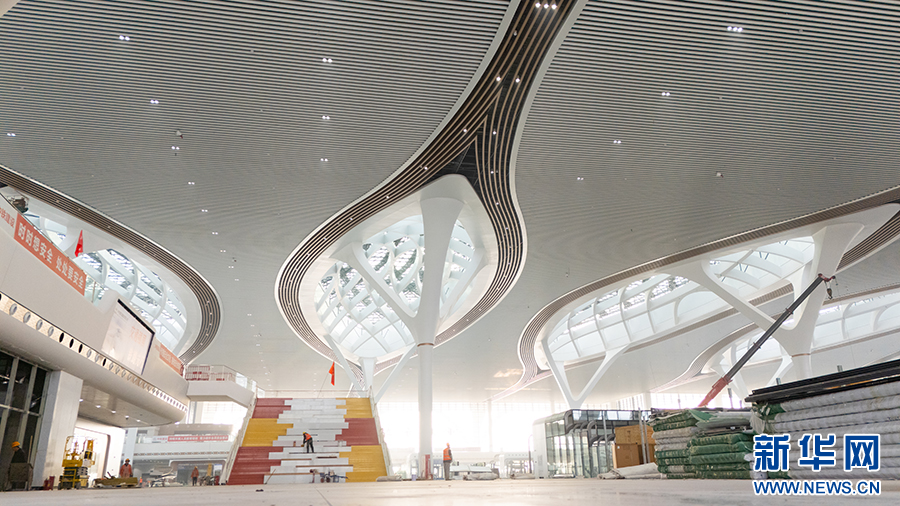 中国铁路成都局集团有限公司消息,1月21日起,西部地区最大高铁枢纽站——重庆东站站房及配套综合交通枢纽工程开始静态验收。目前,车站装饰装修施工已完成95%以上,为年内实现开通运营做好充足准备。新华网发(中国铁路成都局集团有限公司供图)
