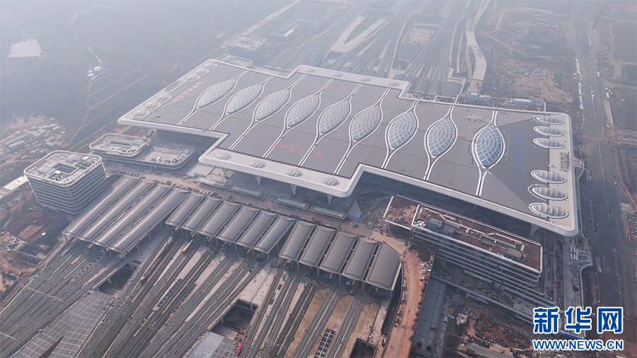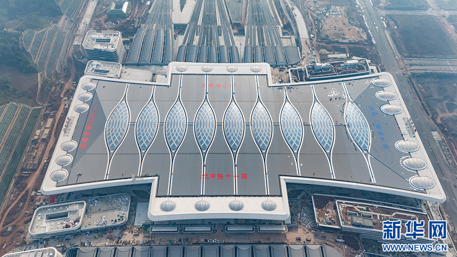 目前,车站站房屋面、外立面幕墙已全部施工完成。新华网发(中国铁路成都局集团有限公司供图)