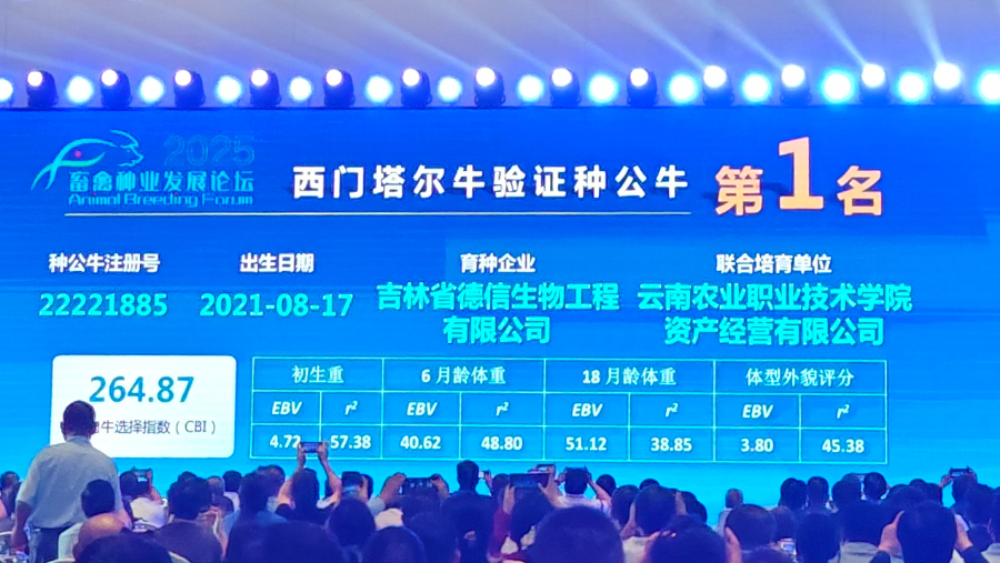 近日,在北京举行的2025畜禽种业发展论坛上,云南农业职业技术学院种畜繁育推广中心培育的种公牛凭借卓越的遗传品质和综合性能,在全国种公牛遗传评估中包揽华西牛第1名、第2名,并斩获西门塔尔牛第1名,彰显了云南在现代畜禽种业创新领域的实力与积淀,为构建具有中国特色的现代肉牛种业体系贡献了可复制、可推广的经验。