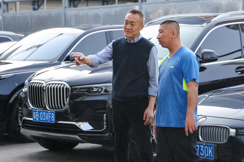 在位于深圳市福田区的喜憨儿洗车中心,曹军(左)正在与心智障碍青年交流(2月11日摄)。新华社记者梁旭 摄