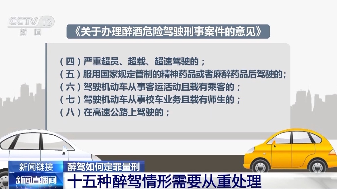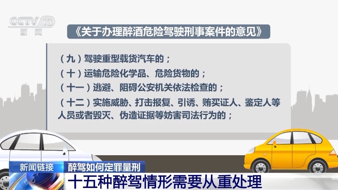 罚当其罪,该宽则宽,当严则严。醉驾行为显著轻微,可以不作为犯罪处理。但同时,《意见》也规定了有十五种醉驾情形需要从重处理。包括: