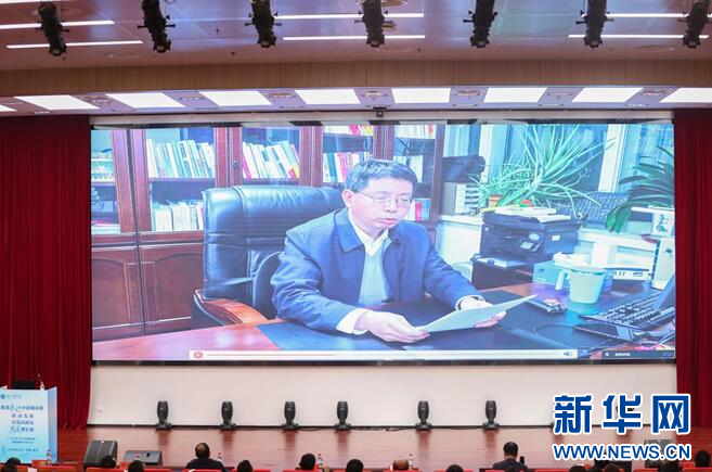 图为高国力通过视频向研究院的成立表示祝贺