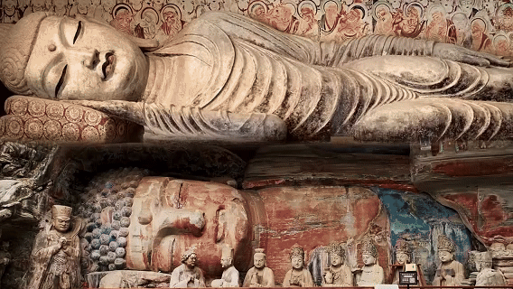 巨大的涅槃卧佛、华丽的千手观音、生动的世俗生活