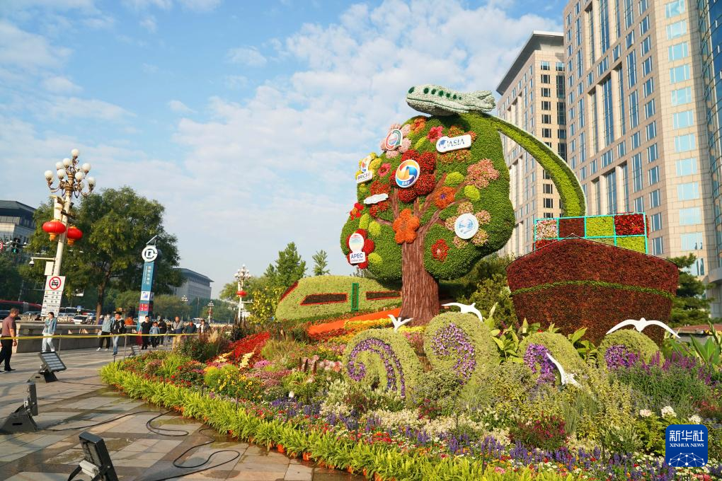 9月25日拍摄的北京长安街建国门西北角“普天同庆”花坛。