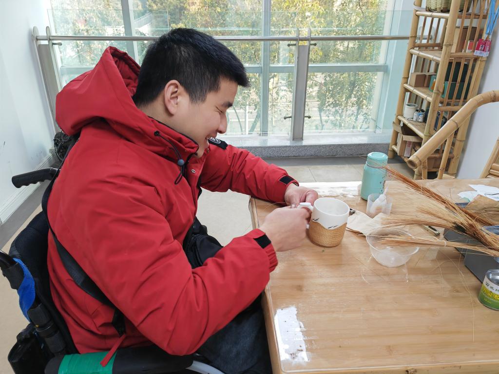 35岁的夏弟钞因一场意外失去行走能力,偶然的机会,他跟着刘罗琳学起竹编。后来,他在成都市残疾人职业技能竞赛中斩获竹编项目一等奖。证书和奖金捧在手里时,他还有些恍惚。如今,轮椅上的他指尖游走竹丝,越编越自信,笑容常挂脸庞。