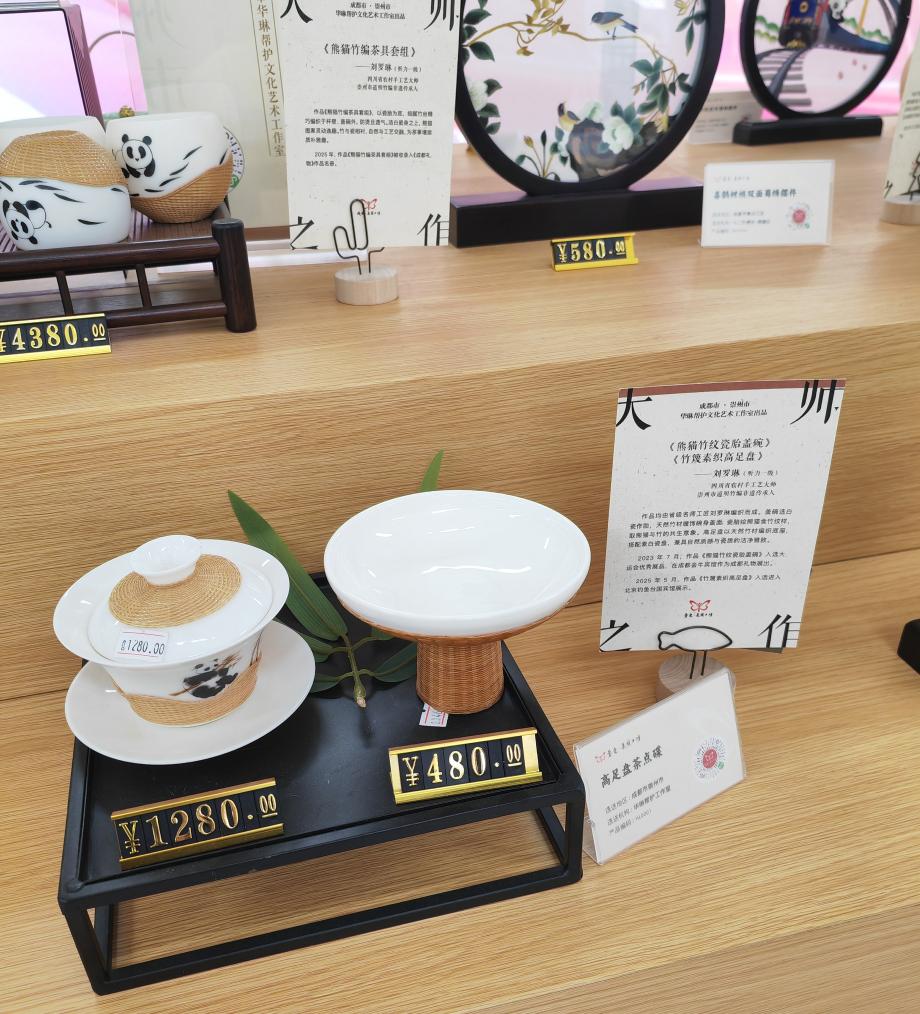 新华社成都2月13日电(记者张海磊)在成都市“蓉光·美丽工坊”文创产业园一楼大厅,展台上静卧着一盏盖碗。白瓷作胎,竹丝作衣,碗面绘着熊猫抱竹,巴山蜀水的气韵,都收在这方寸之间。