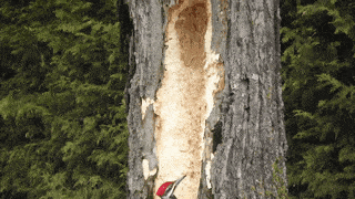 这还是那个捕捉藏在树干中害虫的益鸟吗?怎么还毁坏树木了?啄得这么用力它们不会脑震荡吗?