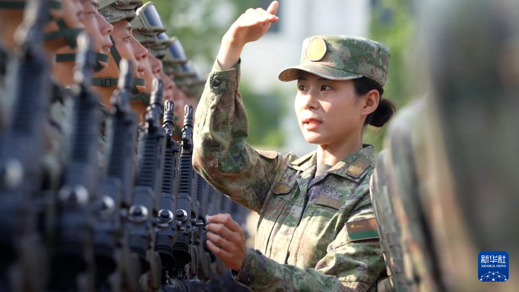 “枪托回收”“身体前倾”“下颌上扬”……阅兵训练场上,一声声口令清脆嘹亮、铿锵有力。口令的发出者,是一位身形挺拔、目光如炬的女战士。