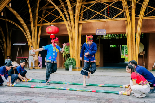 在五指山市水满乡毛纳村,欢快的黎族竹竿舞拉开了海南行序幕。