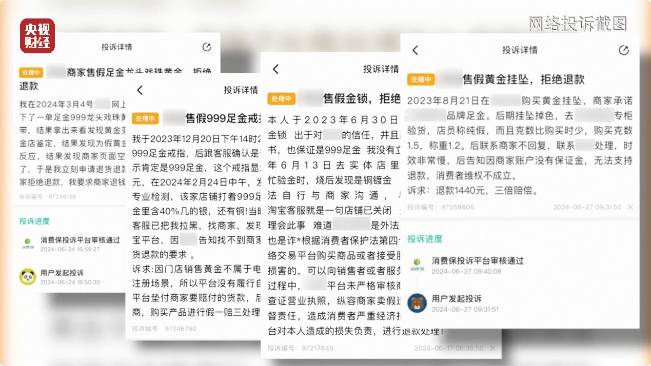 在一些网络平台上所销售的“999足金”产品,存在着“以假充真”“掺杂掺假”等诸多情况。带着投诉者的诸多疑问,《财经调查》记者展开了为期两个多月的调查。