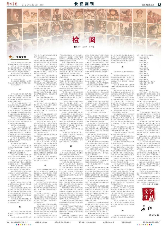 9月24日,《解放军报》用一个整版的篇幅刊发报告文学《检阅》,再次掀起人们对这场盛大阅兵的热议与深思。作为多次采写和组织阅兵报道的资深媒体人,我读完这篇报告文学,深感滚烫的文字撞击着心灵,真切感受到那份跨越时空的信仰力量、军人担当与民族豪情。它不仅是对不同时期受阅官兵事迹的真实记录,更是一部凝聚精神力量、激励人们团结奋进的优秀文学作品。