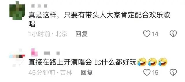 “堵车后有几个年轻人开始唱歌,