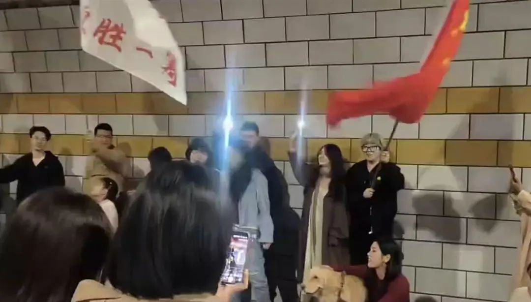 还有人拿出国旗挥舞。”