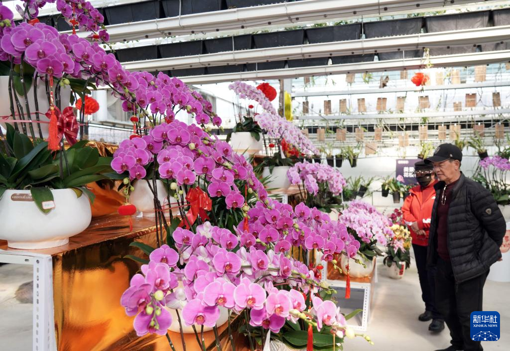1月23日,昆明市民在云南省农业科学院花卉研究所举行的兰花展上欣赏兰花。