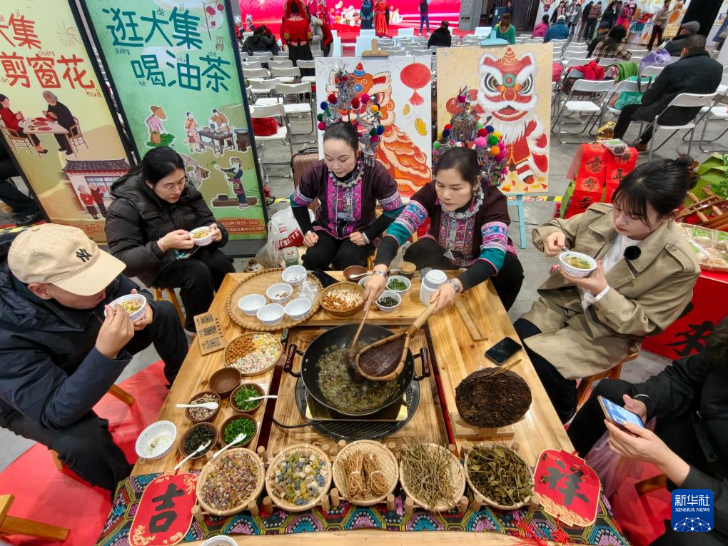 1月23日,消费者在广西南宁国际会展中心农产品年货大集上品尝油茶。