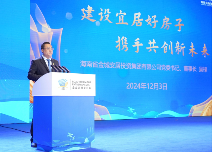 吴禄在2024企业家博鳌论坛上作《建设宜居好房子 携手共创新未来》主旨发言。(海南金城供图)