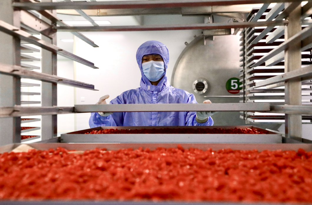 “世界枸杞看中国,中国枸杞看宁夏,中宁枸杞甲天下”。正值宁夏头茬枸杞采摘旺季,6月26日,宁夏中宁县百瑞源枸杞种植基地迎来了锁鲜枸杞数字化车间二期项目正式投产。此次投产标志着枸杞锁鲜技术迭代升级,以智能化、数字化重塑锁鲜枸杞标准新高度,锁鲜枸杞正式迈入2.0时代。
